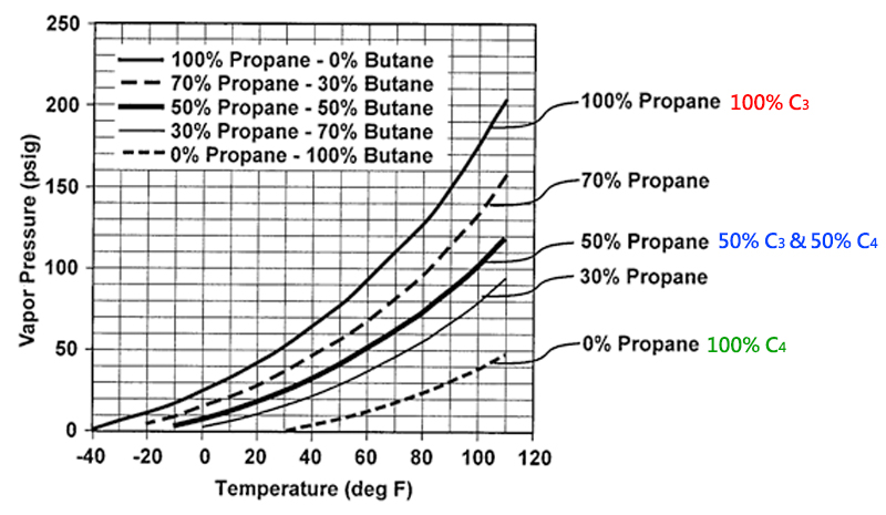 當使用丙烷 / 丁烷混合氣時,該系統(tǒng)有一先天缺陷。當一次充裝混合氣液體入容器時,丙烷首先汽化。 剩下的液體中,丁烷濃度將增大,使逸出蒸汽的發(fā)熱值出現(xiàn)差異。
